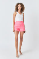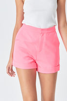 Get ready to show off your playful side in our Amie Shorts in Neon Pink! With a high waisted fit, waistband for comfort, and zip fly with hook-and-bar closure, you'll feel confident and stylish. Slash pockets and decorative back jetted pockets add functionality and flair, while the cuffed hem and lining provide a sophisticated touch. Perfect for any occasion!