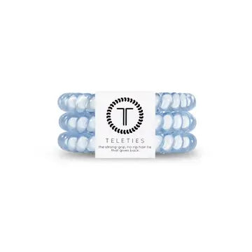 Washed Denim Small Hair Ties in Blue offer a strong grip without damage, doubling as a chic wrist accessory when not in use. Your new favorite hair essentials all year round.
