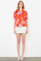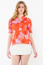 Get ready to rock this blue and white short sleeve print top! With its eye-catching design and comfortable fit, you'll be the envy of everyone around you. Perfect for a casual day out or a night on the town, this top is a must-have addition to your wardrobe. (Just don't be surprised when you get non-stop compliments!)
