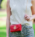 This playful wallet on chain doubles as a chic clutch with a removable chain for versatile wear. It boasts two compartments and credit card slots to keep your essentials organized. Big enough to fit your iPhone, it’s the perfect easy-to-grab bag for a night out or to toss inside your tote without any fuss.