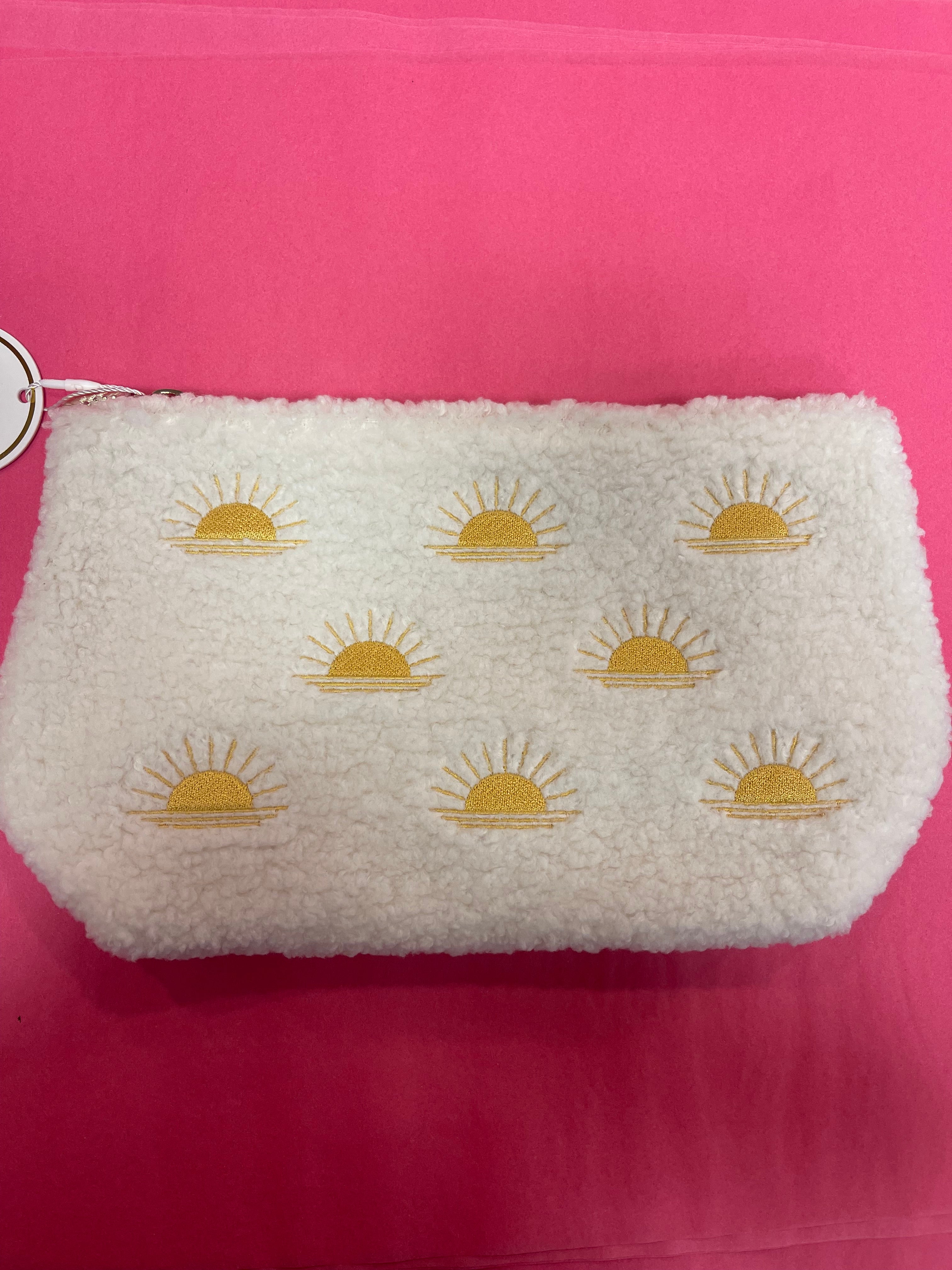 Add a cozy touch to your essentials with our rectangle teddy pouches. Crafted from soft sherpa fabric, these pouches feature a wipeable lining for easy cleaning and gold zippers and hardware for a polished look. The interior is lined with a fun printed fabric, making it as stylish on the inside as it is on the outside.