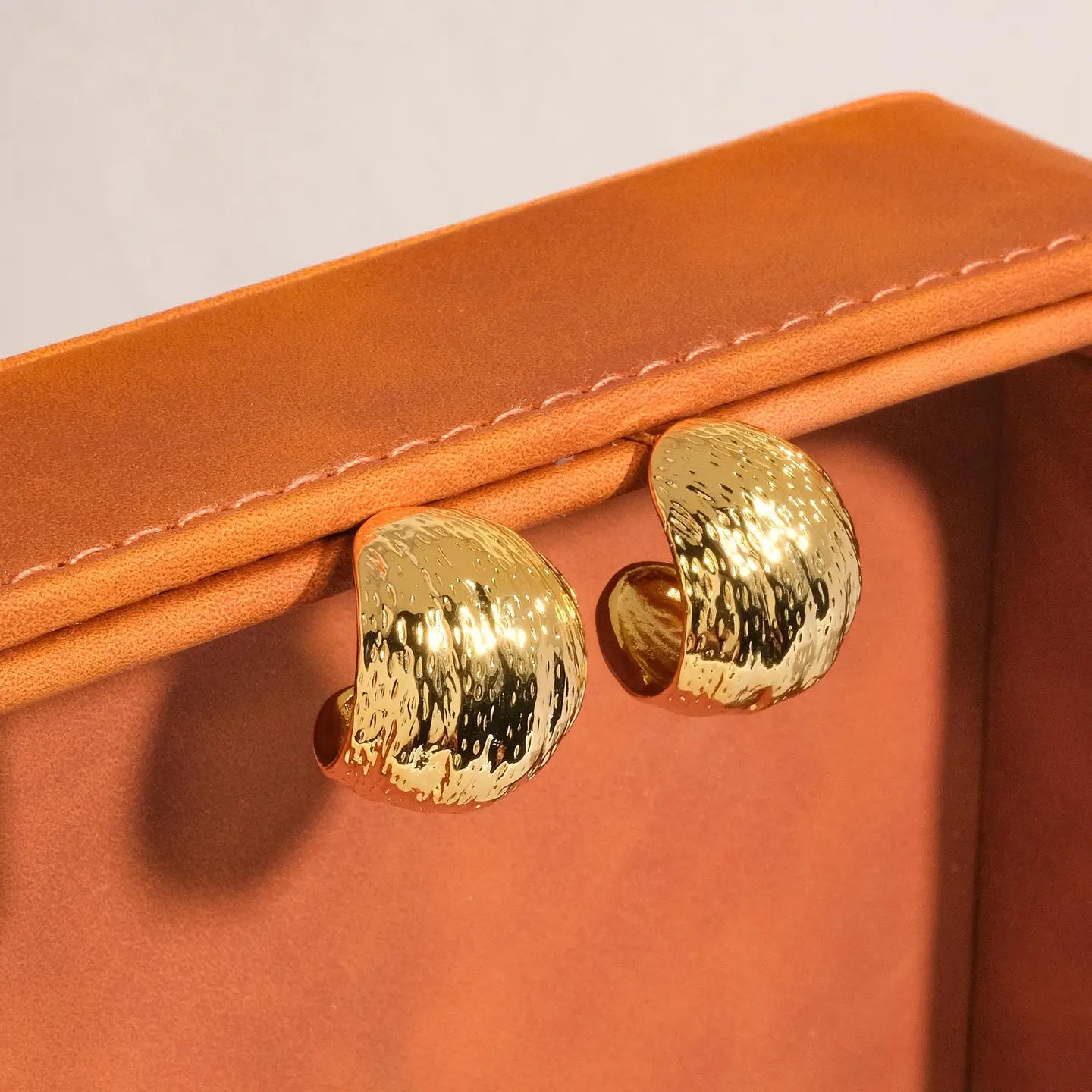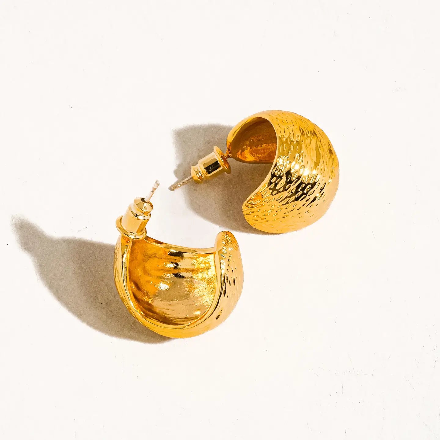 Meet your new ear candy obsession! Ava Earrings feature a gorgeous textured finish that adds dimension and movement to every look. With 18K gold plating over brass, these huggie-style stunners hug your ear just right—comfortable enough for all-day wear. Nickel-free and lead-safe, they're gentle on sensitive skin while delivering that luxe, polished vibe you're craving.