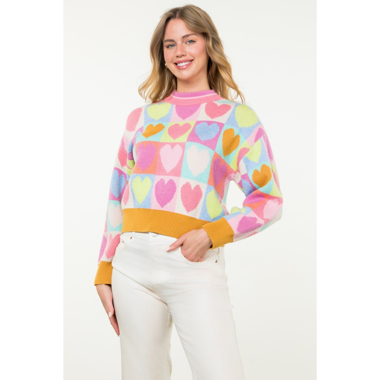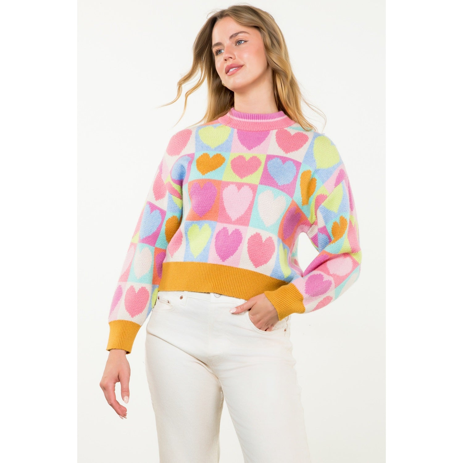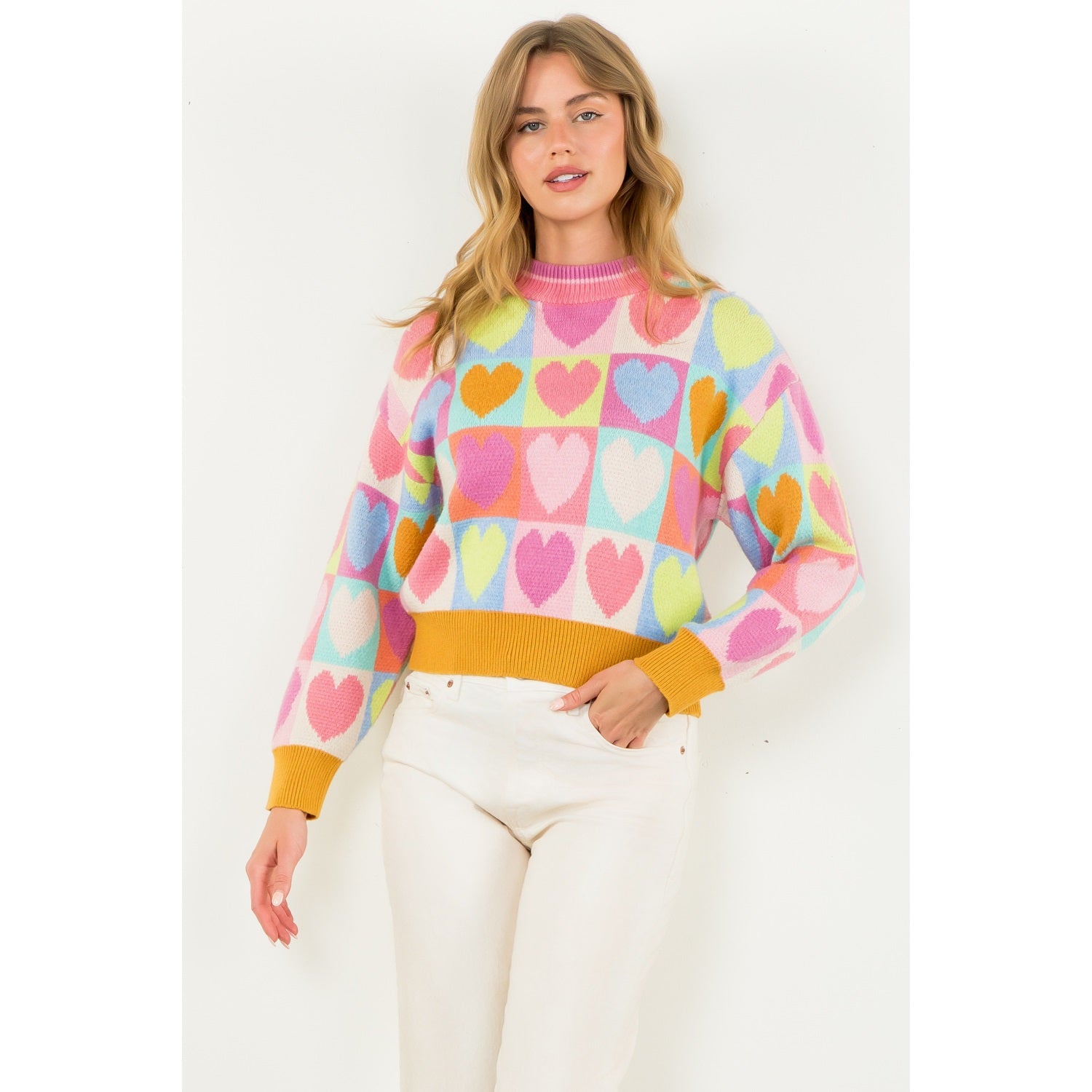 Mock Neck Heart Knit Sweater