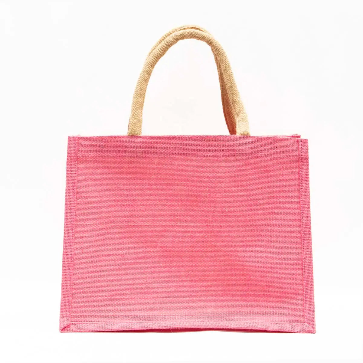 Solid colored jute cosmetic bag with tassel zipper closure. 12x10x8